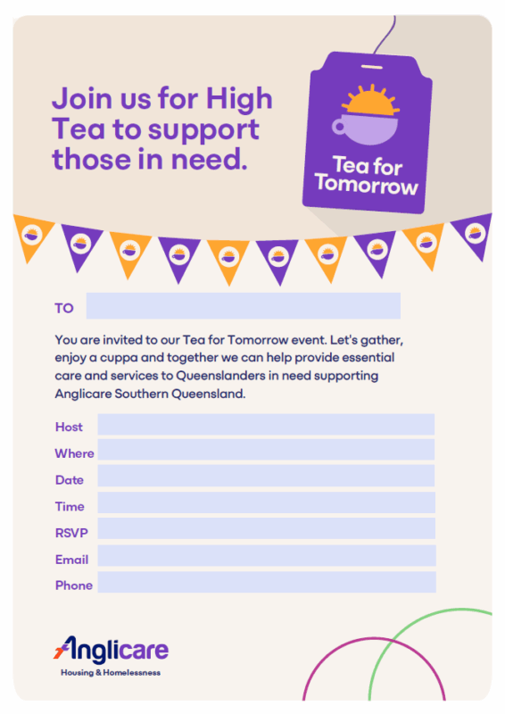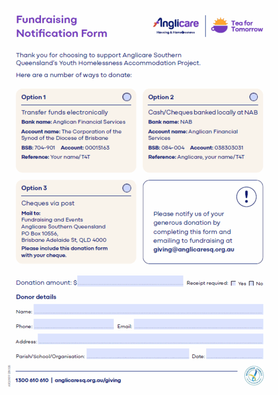 Your Tea for Tomorrow will directly support Anglicare Southern Queensland’s Youth Homelessness Accommodation Project, providing: